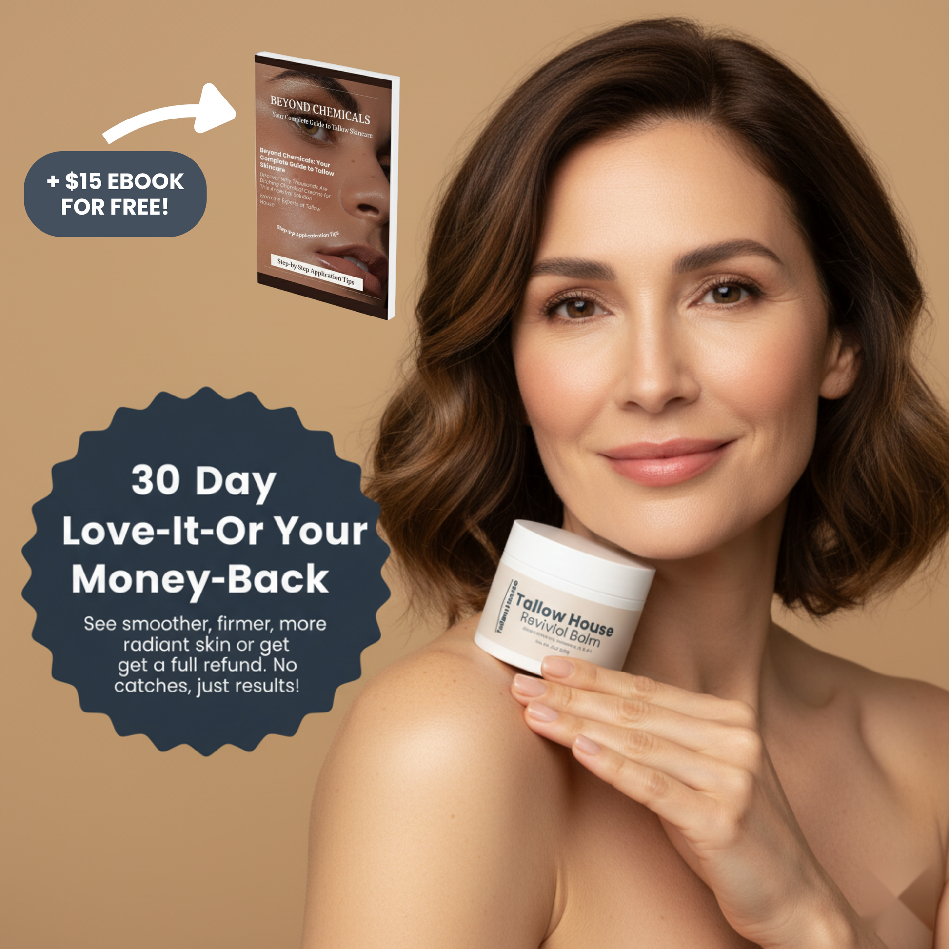 We're confident you'll love your Tallow House Revival Balm. If you don't see noticeable improvements in your skin's texture, hydration, or overall appearance within 30 days, we'll refund your purchase completely.